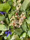 Nous dégusterons aléatoirement, des salades sauvages et fleuries, des rouleaux de printemps de plantes sauvages, des pestos d'ortie, de plantain, des gratins de chénopode bon Henri, des omelettes de bourgeons floraux, des soupes bourrées de vitamines et de délicieux desserts associant les plantes sauvages à nos produits locaux : châtaignes, pélardons, miel, oignons doux...